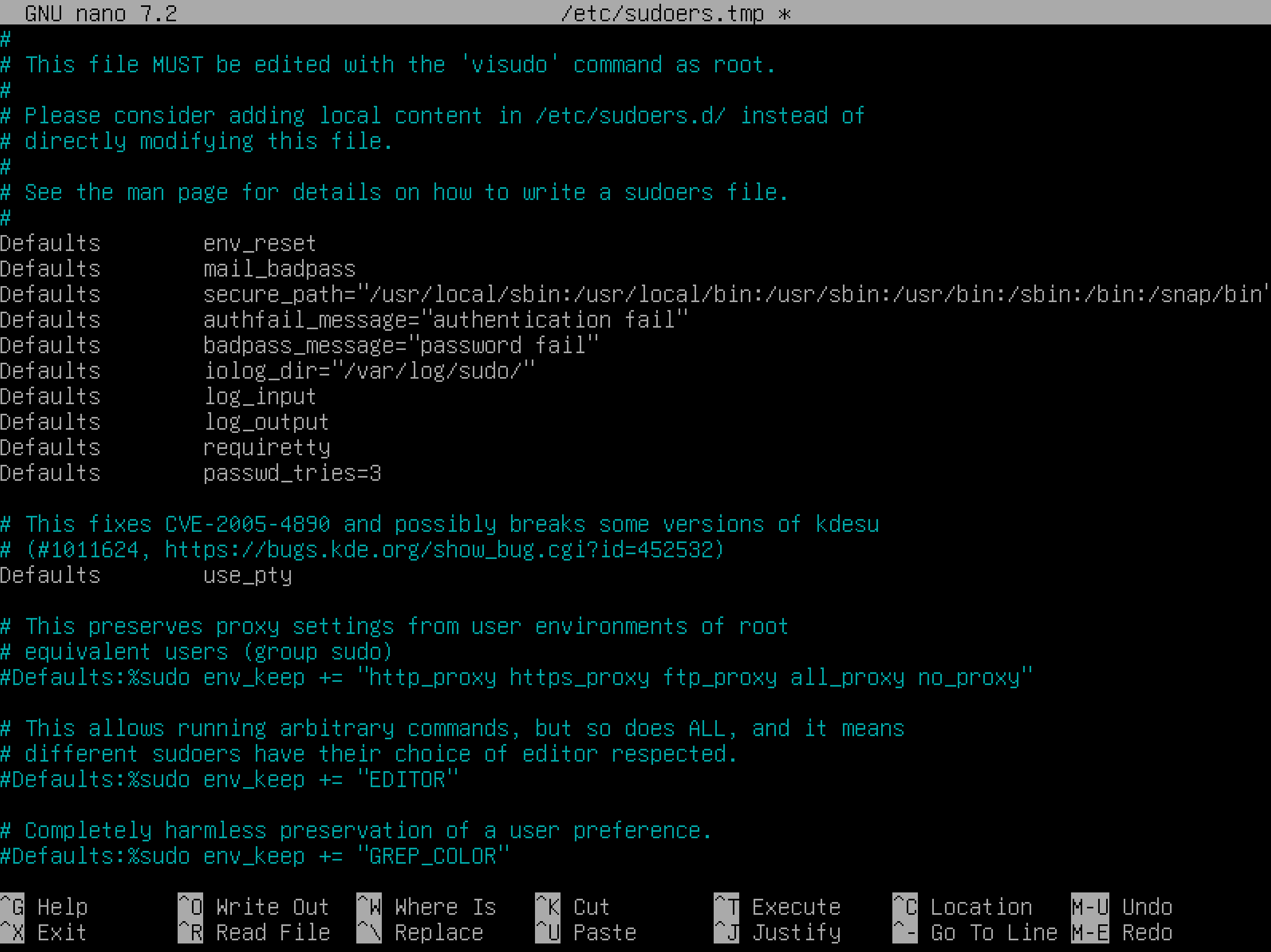 Defaults secure_path=”/usr/local/sbin:/usr/local/bin:/usr/sbin:/usr/bin:/sbin:/bin:/snap/bin”